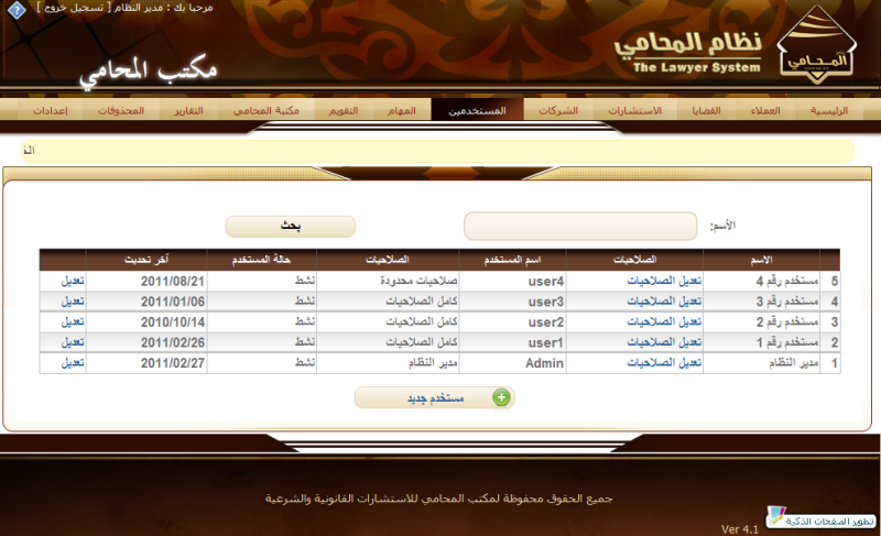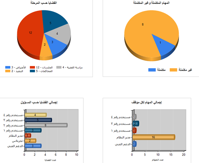 نظام إدارة جميع المهام الخاصة بالمكتب القانوني والمتعلقة بمختلف القضايا, مع إمكانية التذكير برسائل الجوال القصيرة sms.