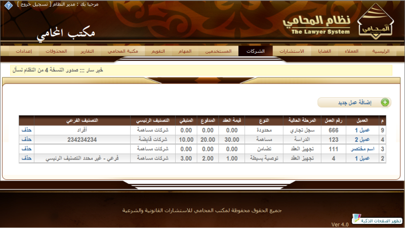 يقددم النظام العديد من الخدمات لادارة كل اعمال مكاتب المحاماة والاقسام القانونيه للشركات